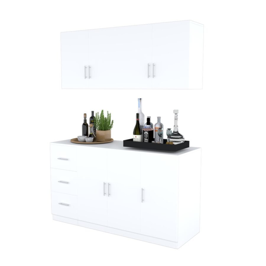 Aparador Buffet Blanco 150 cm con Mueble Aéreo – Organizador para Cocina o Comedor | Innovaciones Lumik